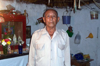 When I first met Juan de la Cruz Pech of Temozón, I was struck by his gentleness, calmness and the sparkling friendliness in his brown eyes. They seemed wise and able to take me in all at once, looking into and through me. An elderly Maya woman wearing a blue embroidered huipile (traditional dress) was his first patient. She was suffering from arthritis and I watched as he treated her with his hands, herbs and melodic chanting.
