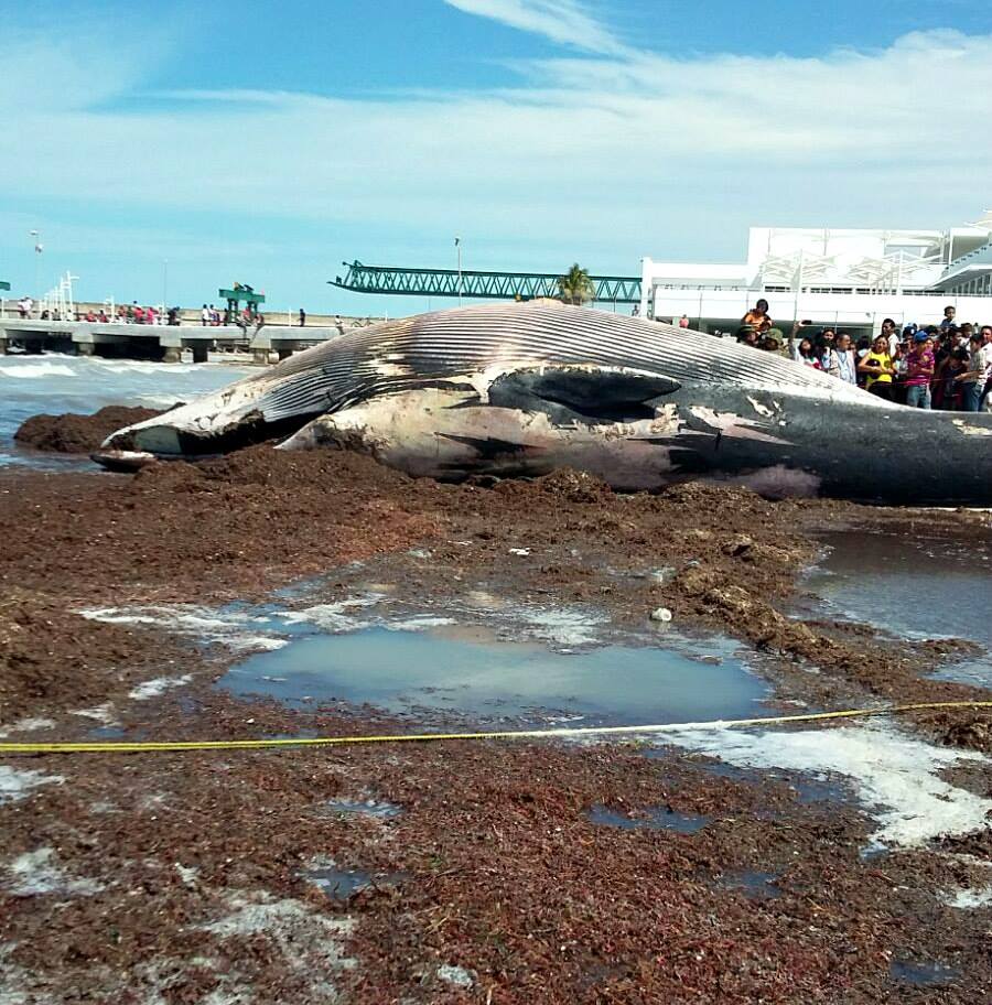 Sadly, a whale was found dead near the port entrance of Progreso and was brought to the beach this past weekend. No one can ever recall seeing a whale in these parts, though recently there have also been sightings of stranded dolphins, turtles and a pygmy sperm whale. This whale appeared to be a fin whale, the second largest whale species on the planet, and an endangered species at that. The whale found in Progreso was 12 meters long (they can get as large as 27 meters) and weighed approximately ten tons. The whale will be studied by students and others from UADY and will be buried later this week. You can see more photos here.