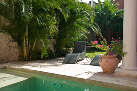 Featured in Architectural Digest Mexico, Casa de las Manos is a luxurious nine room colonial home with large kitchen, living room, dining room, gallery, outdoor living room patio, four bedrooms, three baths and a stunning pool, just blocks from both the Plaza Grande and Paseo Montejo.